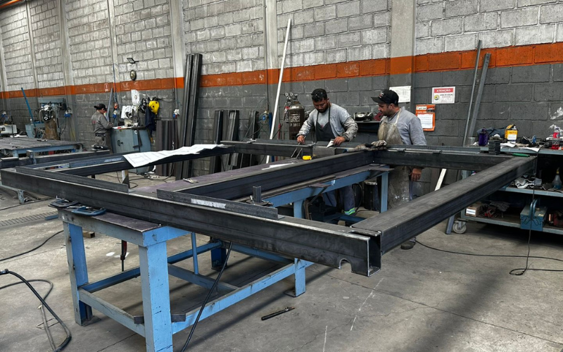 A união das peças é feita por soldagem de precisão, seguindo procedimentos qualificados (WPS – Welding Procedure Specification). Inspeções não destrutivas, como ultrassom e líquido penetrante, são aplicadas para verificar a integridade das juntas. O acabamento envolve tratamentos de superfície, como pintura epóxi ou galvanização a fogo, garantindo durabilidade mesmo em ambientes industriais severos.